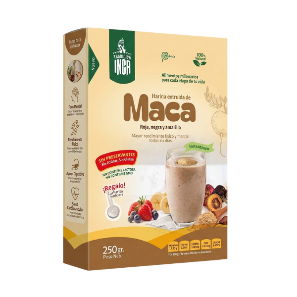 Nuestra maca instantánea elaborada con maca gelatinizada peruana te permite preparar un desayuno natural, práctico y nutritivo en solo 1 minuto. Ideal para mamás que quieren alimentar bien a su familia incluso en las mañanas más apuradas.